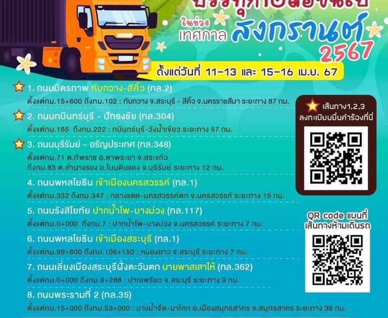 8 เส้นทาง ห้ามเดินรถบรรทุก 10 ล้อขึ้นไป 9 เมษายน 2567 โดย admin / ข่าวประชาสัมพันธ์,ข่าวฝากประชาสัมพันธ์ FacebookFacebookXXLINELine